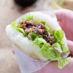 Nasi kepal menyajikan nasi hangat dengan isian yang didalamnya terdapat daging suwir yang dioalh (ayam/sapi), surendeng merah dan kuning, dan dibalut sayuran seperti selada/seledri segar dan sederek bisa request di dalamnya. Tersaji dengan porsi yang cukup sehingga untuk orang yang sedang diet tetap bisa menjaga pola makan yang sehat.