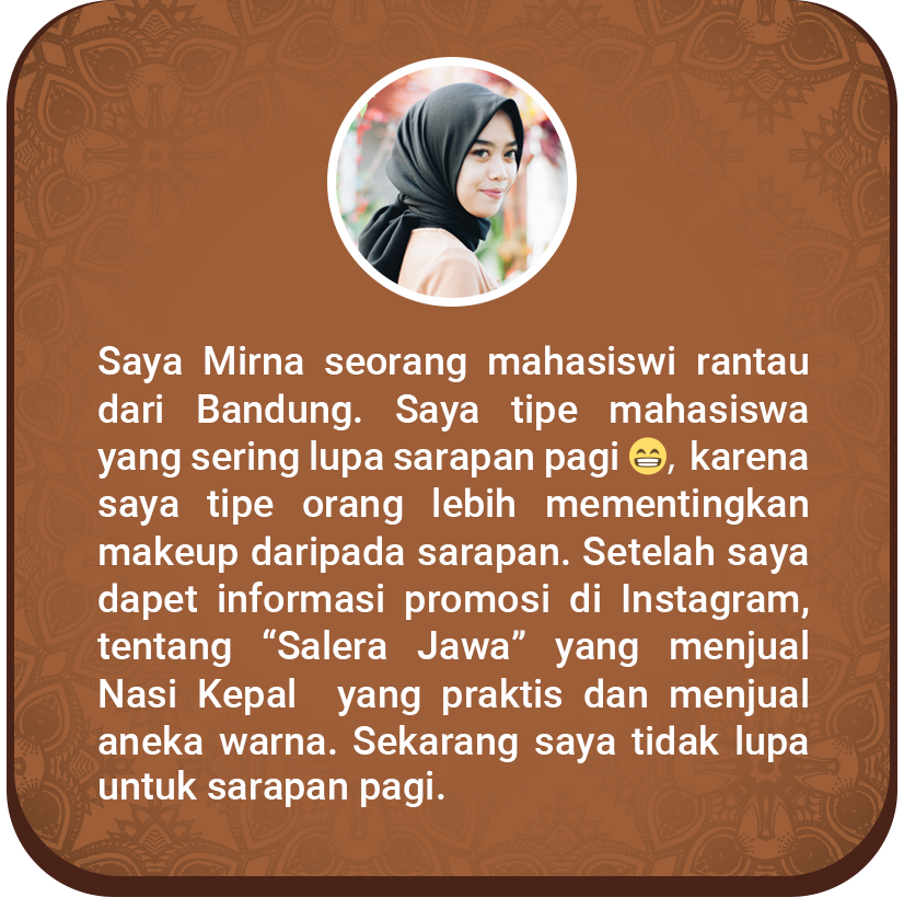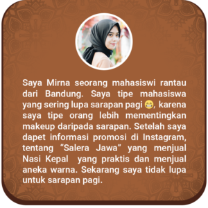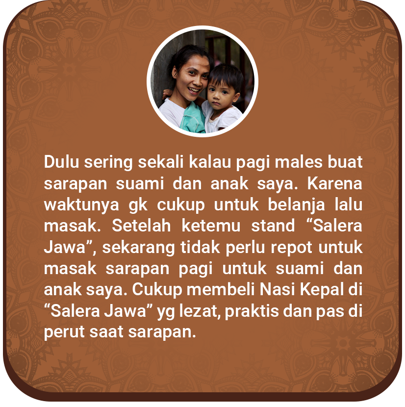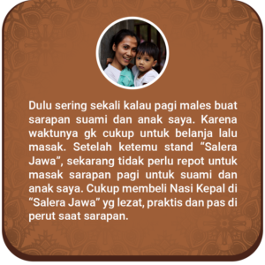 Kami memberi solusi kepada Sederek dari produk kami Salera Jawa yaitu Nasi Kepal Warna Warni dan Lumpia Bermacam Varian.