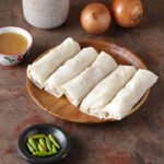 Lumpia gurih dengan berbagai macam isian rasa ditemani dengan pelengkap seperti saus, daun bawang, dan cabai.